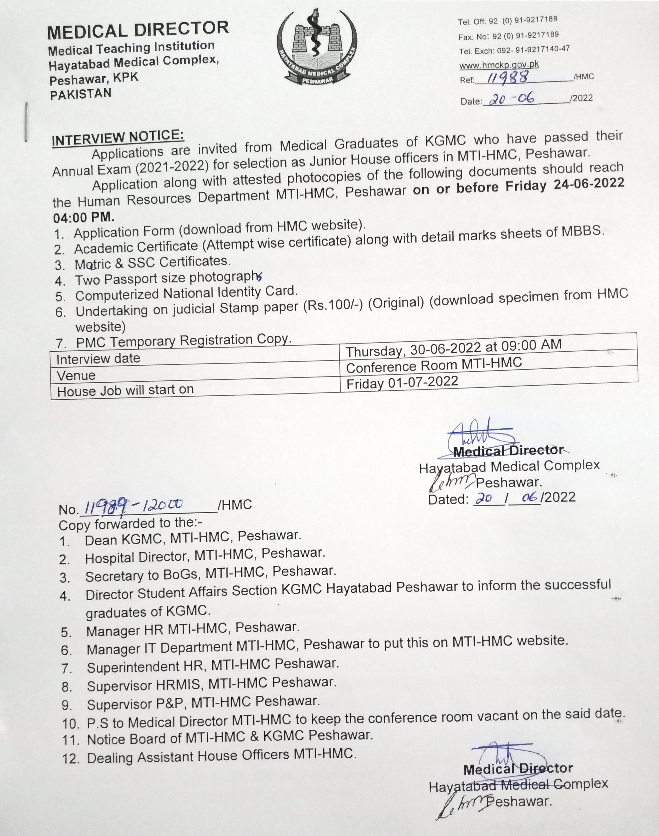 House Job (2022-2023) for KGMC Graduates only